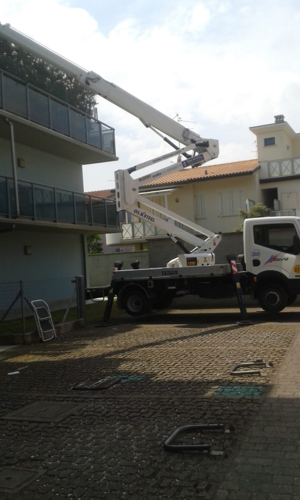 - lavaggio e pulizia vetri con l'ausilio di macchine con cestello per raggiungere qualunque altezza